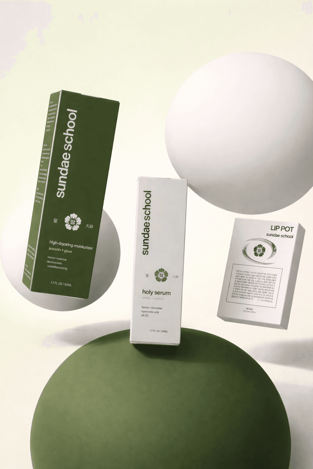 Designed a three-product skincare line for Sundae School that reinterprets traditional Asian beauty rituals through hemp-based formulations.